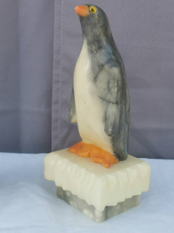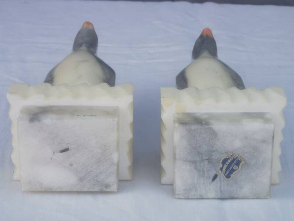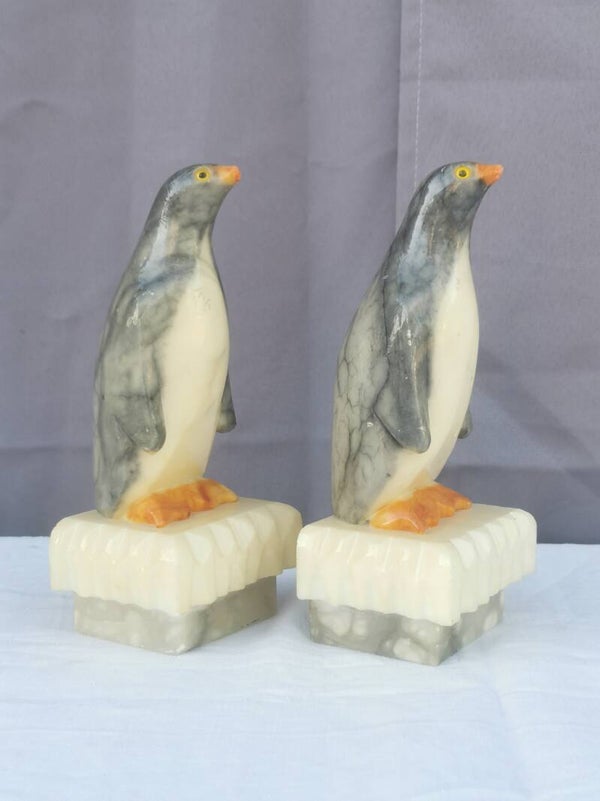 PAIRE DE SERRE LIVRES "PINGOUINS" En Albâtre