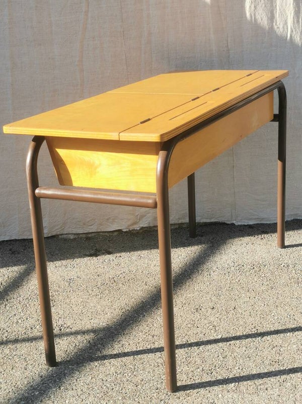 Bureau ancien avec son plateau en chêne clair, formant 2 abattants, découvrant 2 grands casiers de rangement