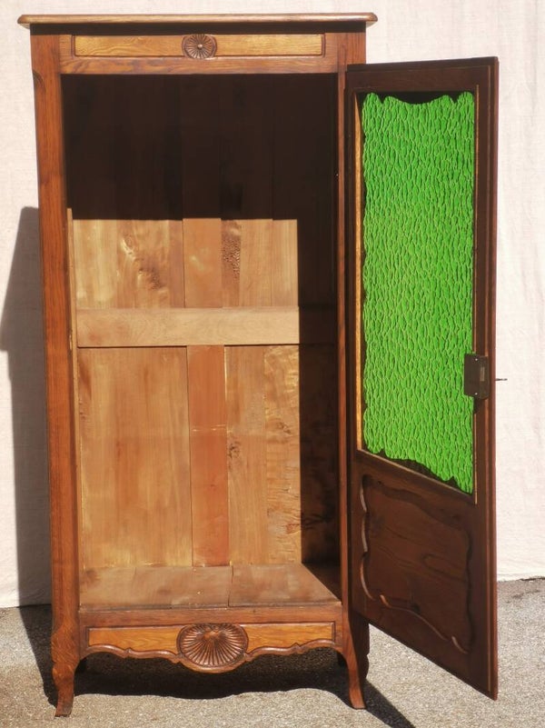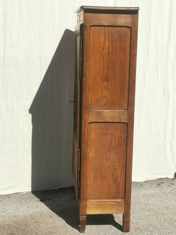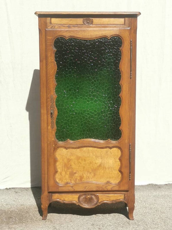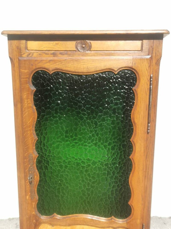 Livrée avec sa serrure et sa clé en parfait état de fonctionnement, ouvre et ferme par 1 grande porte vitrée au 2/3, équipée d'un verre granité de couleur vert (peut facilement être changé)
